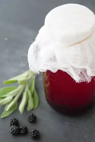 Add berries and sage during the second fermentation. Wait 2–4 days, then strain and refrigerate.